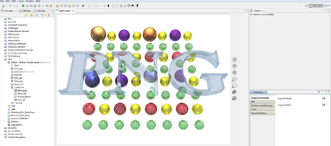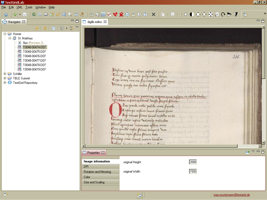 Klicken Sie auf das Bild im Digilib-Editor und der Assistent „Eigenschaften“ wird für die Bearbeitung geöffnet. Jetzt ist Ihr Arbeitsbereich fertiggestellt.