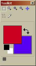 die Vordergrund- und Hintergrund-Farbe aus - "Farbe zurücksetzen": Durch Klicken des kleinen Quadrate-Paars werden die Vordergrund- und Hintergrund-Farbe auf die Standardfarben zurückgesetzt (schwarz und weiß)