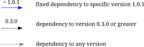 below. Dependencies (dashed arrows) can also specify OSGi version