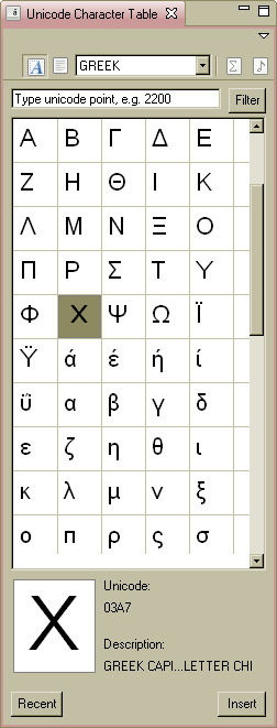 - Toolbar and Header of the Unicode Character Table View